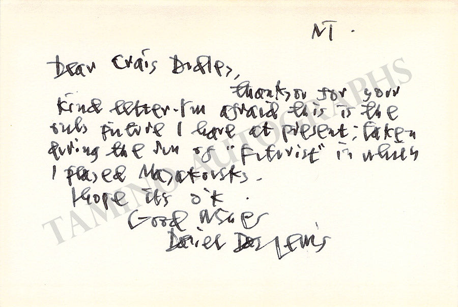 Day-Lewis, Daniel - Signed Photograph & Autograph Note Signed Day-Lewis, Daniel - Signed Photograph & Autograph Note Signed