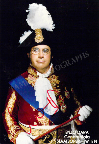 Signed photograph, shown as Don Magnifico in Rossini's La Cenerentola. Size is 4 x 5.75 inches, in excellent condition.