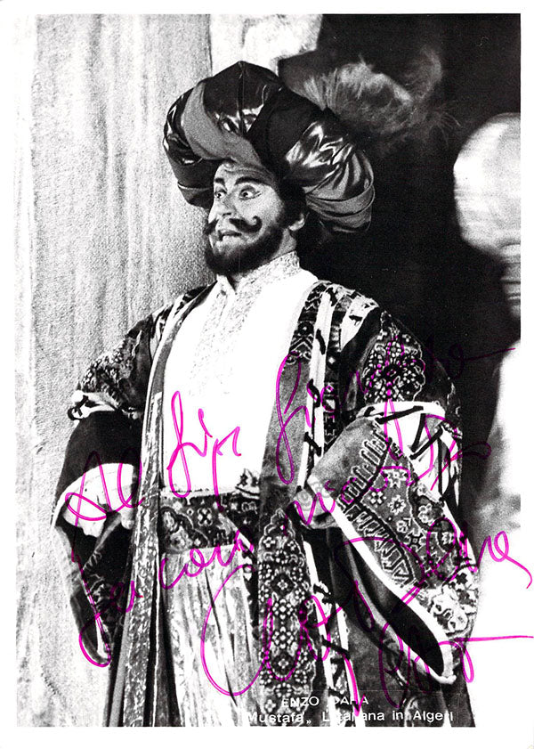 Signed photograph, shown as Don Magnifico in Rossini's La Cenerentola. Stamped on verso by Piccagliani, La Scala, Milan. Size is 5 x 7 inches, in excellent condition.