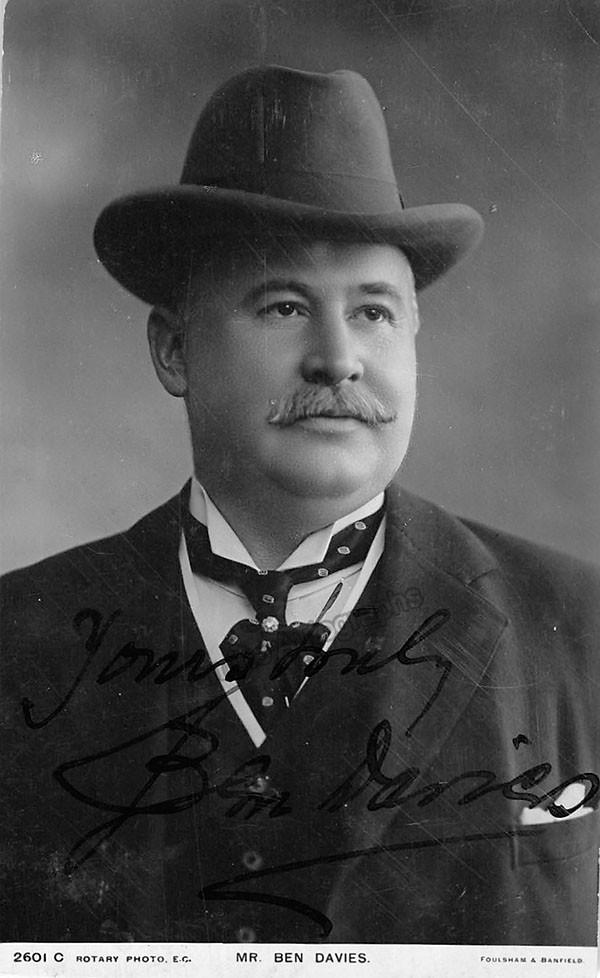 Welsh tenor (1858-1943), signed photo postcard, shown as himself. Size is 3.1 x 5.1 inches, trimmed in all four borders, otherwise in very good condition.