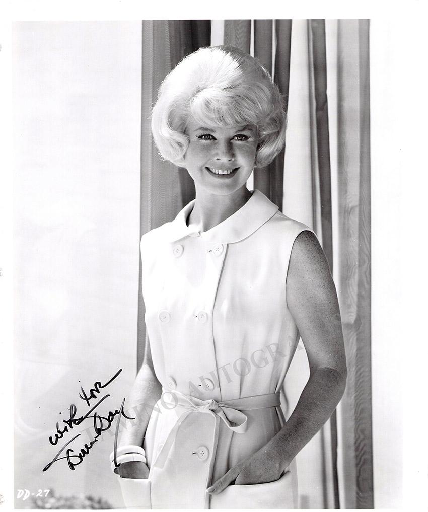 American actress (1922-2019) and singer, becoming one of the biggest film stars in the early 1960s and one of the few performers to have been the top box-office earner in the USA four times; active in films between 1939 and 1989.  Signed photo shown as herself, size is 8 x 9.6 inches, in very good condition.