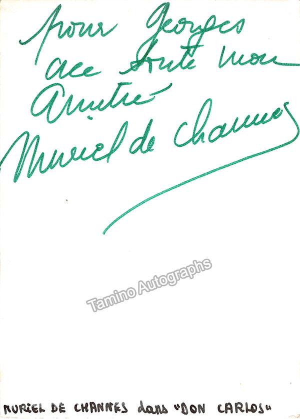 French soprano, signed photo, shown in role in Don Carlo. Signature is on verso. Inscribed, with a short sentiment. Size is 4.25 x 5.75 inches.