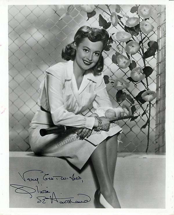 British-American actress (b.1916), active in movies for over 70 years! (1935 through 2009). De Havilland worked in tens of films, TV shows, including Gone with the classic Wind (1939). Signed photo, 8 x 10 inches, shown young, excellent condition
