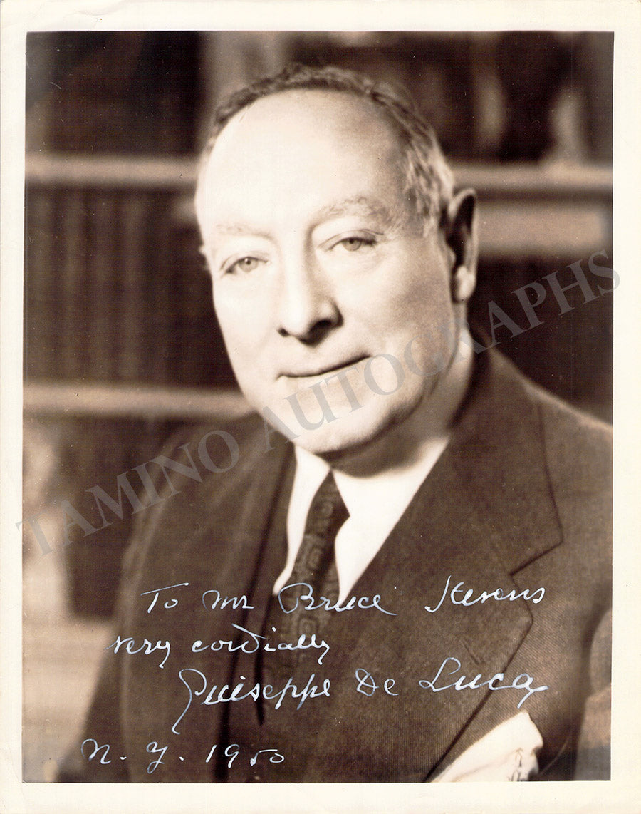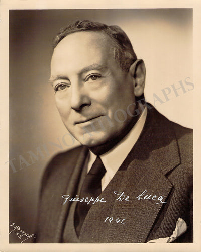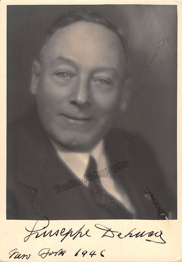 Signed postcard photograph, shown as himself, dated in New York in 1946. Stamped on verso by Bonaventura photographers, Rome. Size is 4 x 5.75 inches, some mounting traces on front as well as a crease near the top right, otherwise in good condition.