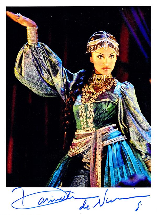 Australian-American lyric soprano (b.1979), large signed photo, shown as Cleopatra in Handel's Giulio Cesare. Beautiful colorful photo with very attractive costume and signature. Size 8 x 10.75 inches, in excellent condition.