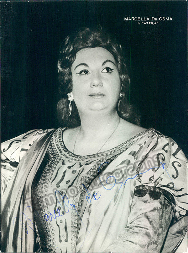 Italian soprano, signed photo, shown in Attila, opera by Verdi. Size is 7 x 9.25 inches, in excellent condition.