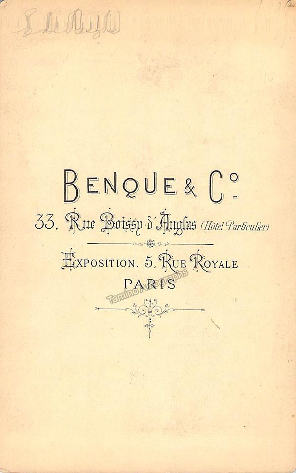 Polish bass (1853-1917), unsigned cabinet photo, by Benque & Company, Paris, shown as Don Diegue in Le Cid (by Massenet), a role he premiered in 1885. Size is 4.25 x 6.5 inches, in excellent condition.