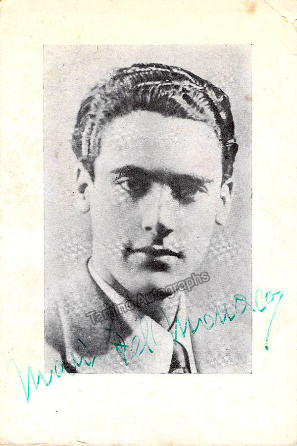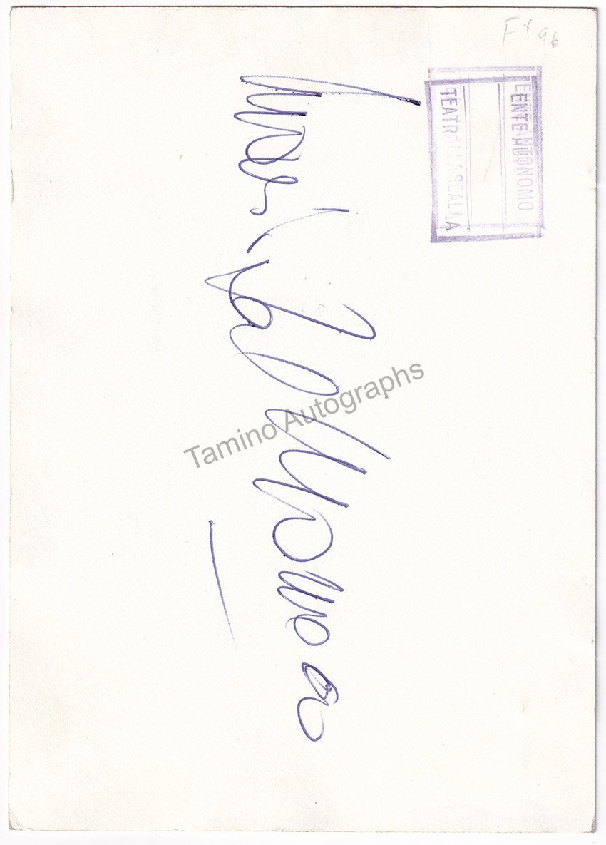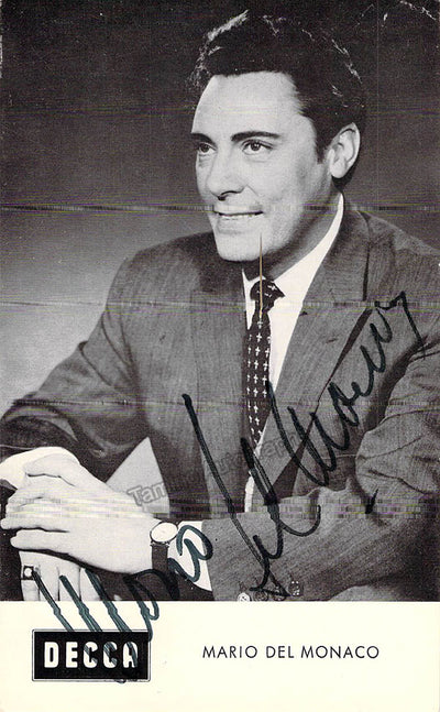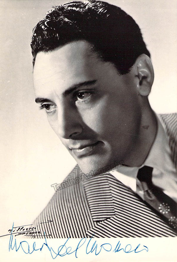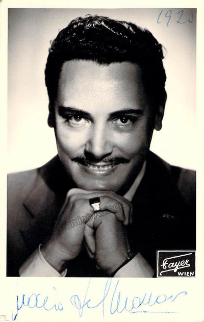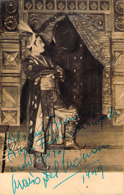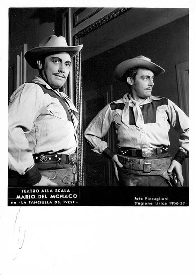 Signed photo, shown as Dick Johnson in Puccini's Fanciulla del West. Signature on verso. Photo by Piccagliani, La Scala, Milan. Size is 4 x 5.75 inches, in excellent condition.
