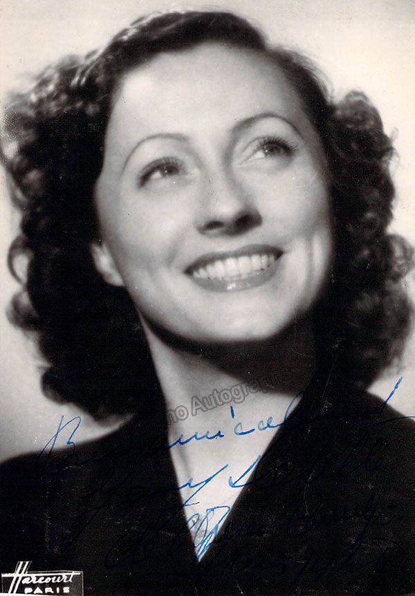 French soprano (1905-?), signed photograph, shown as herself, inscribed and dated in 1946. Photo by Harcourt, Paris. Size is 4 x 5.5 inches, in very good condition.