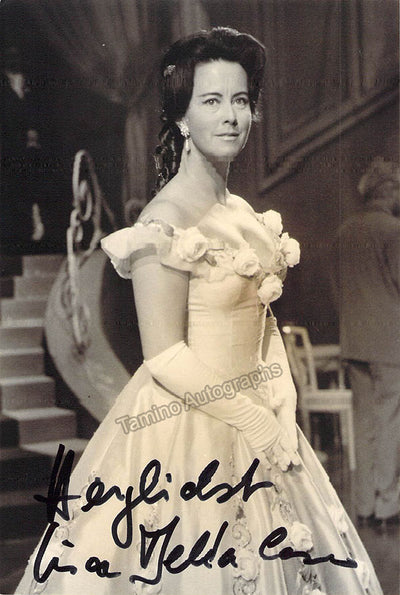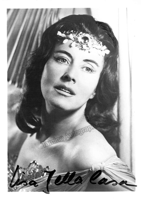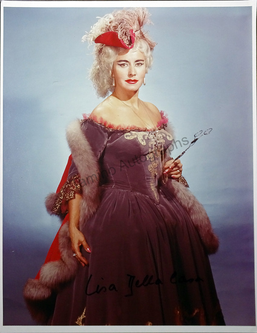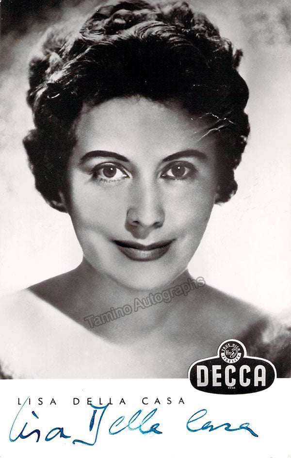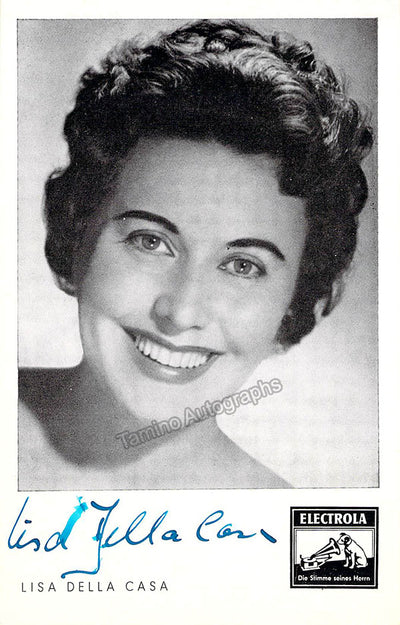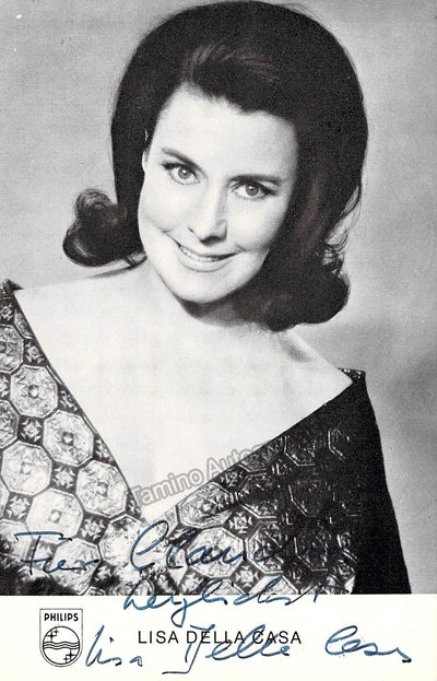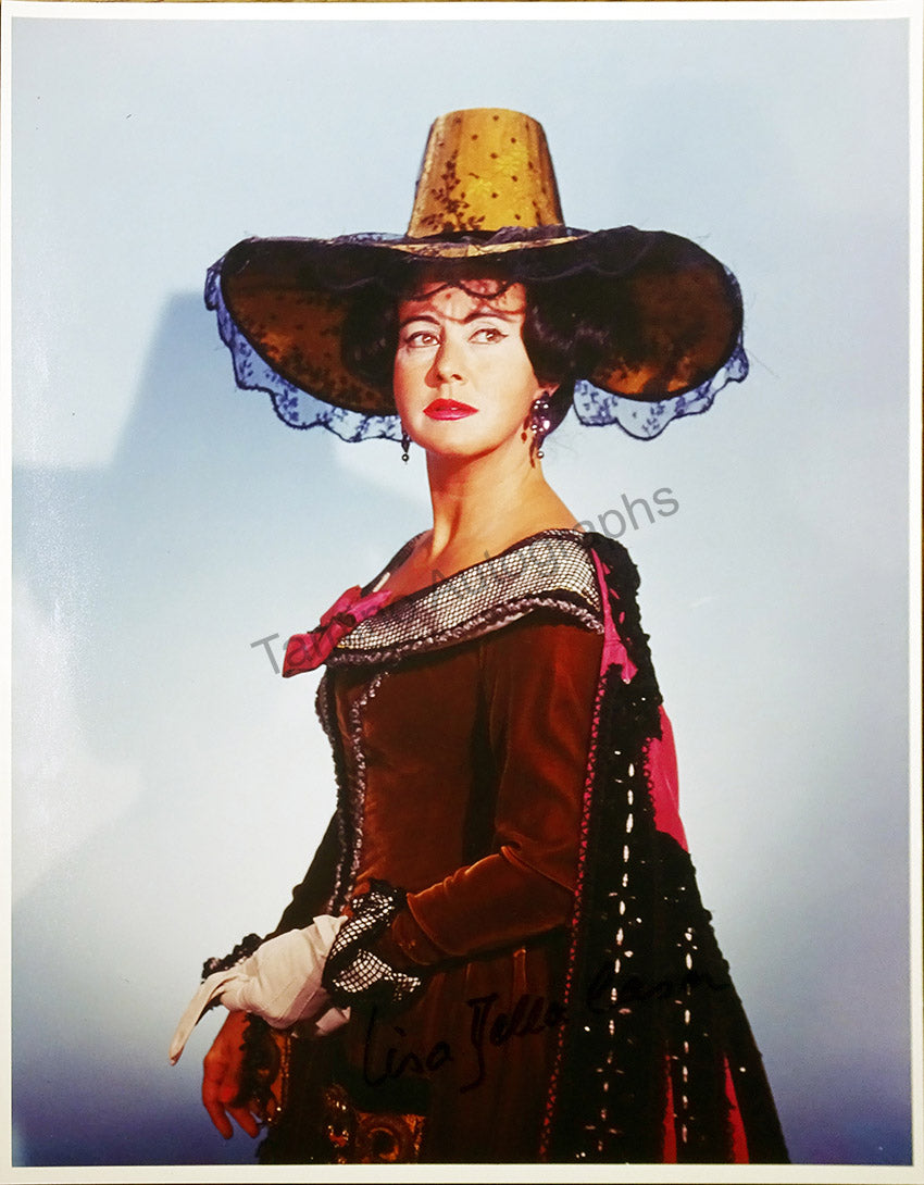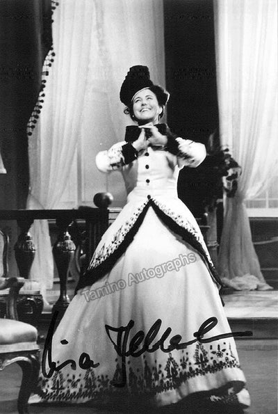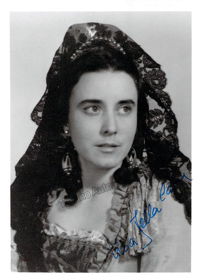 Nice black-and-white photograph signed by her, shown in costume for a performance of Strauss' opera Der Rosenkavalier at Teatro alla Scala, season 1951-1952. Size is 4 x 5.5 inches, photo by Erio Piccagliani, in excellent condition.