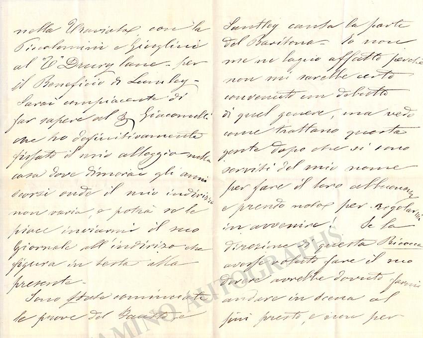 Autograph letter signed, composed in 1863, 4 pages, written in Italian and sold untranslated. Each page is 4.25 x 7.25 inches (4-page folded document), beautifully preserved in excellent condition.