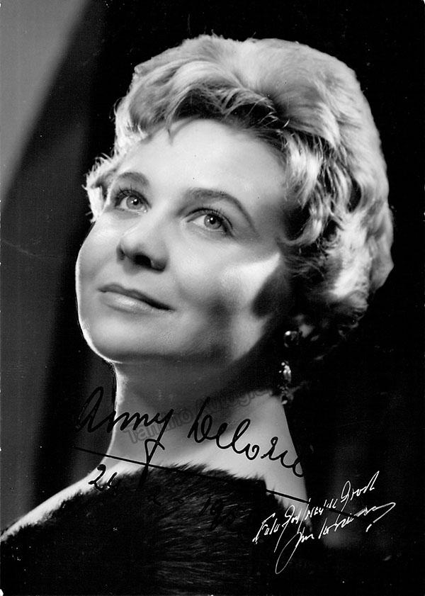 Dutch mezzo-soprano (1925-2009), signed photo, shown as herself, dated in 1959. Stamped on verso by photographer Godfried de Groot, Amsterdam. Size is 4 x 5.75 inches, in very good condition.