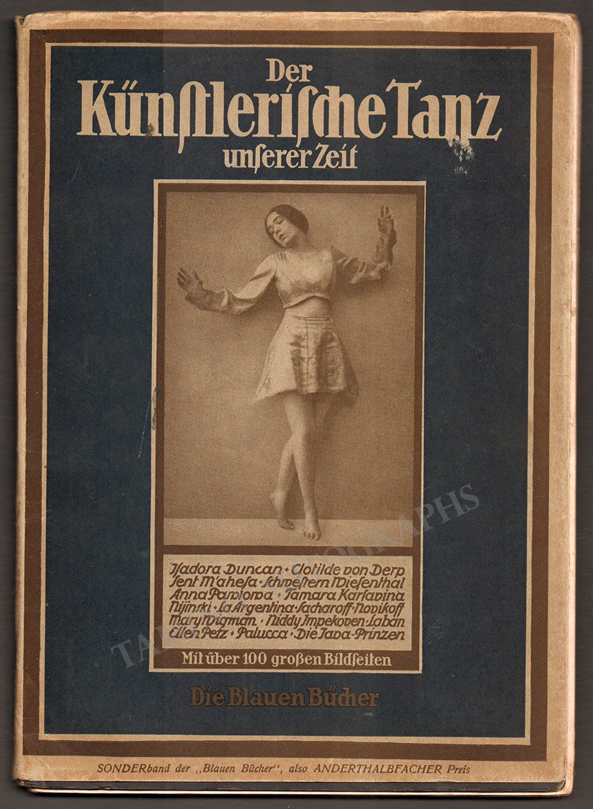 Photographs of leading figures in the dance world of the early 20th century, including Isadora Duncan, Mary Wigman, Anna Pavlova, Nijinsky, and others, photos by some important photographers, text in German. Over 100 photographs including many full page plates.