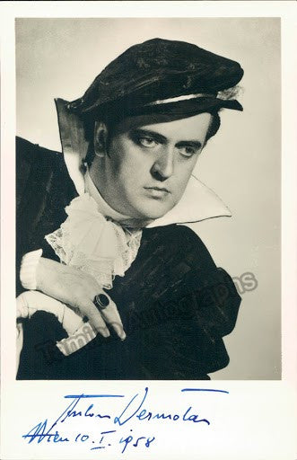 Signed photo postcard of the famous Slovene tenor (1910-1989) shown in role, dated in 1958, Vienna. Size 3.5 x 5.5 inches.