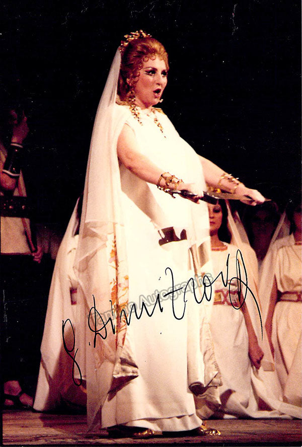 Signed photograph, shown as Abagaille in Verdi's Nabucco, inscribed. Size is 4 x 5.75 inches, in excellent condition.