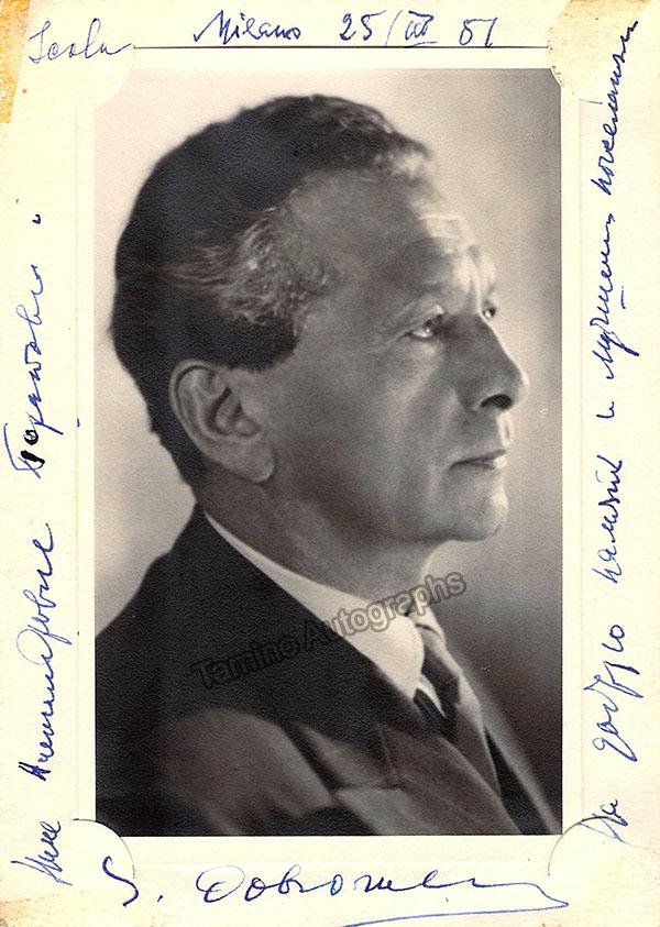 Russian-Norwegian conductor (1891-1953), also pianist and composer. Signed card with a mounted photo, dated in Milan in 1951. Stamped on verso by photographer Frans Haals, The Hague. Size is 4.4 x 6.1 inches, in very good condition.