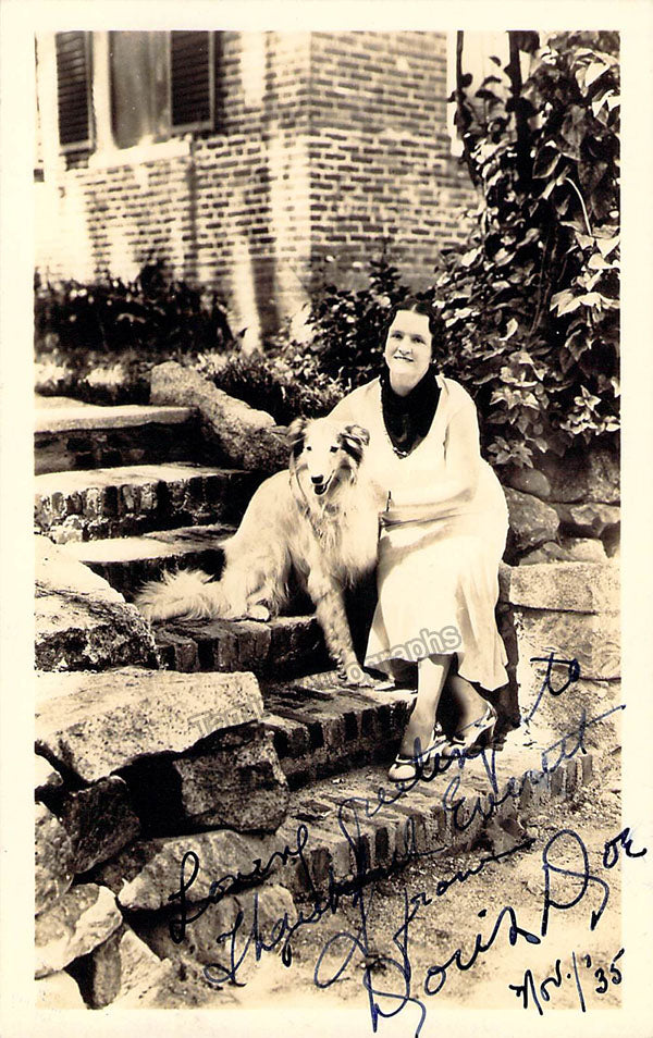 Signed postcard photograph, shown as herself, inscribed and dated in 1935. Size is 3.25 x 5.25 inches, in excellent condition.
