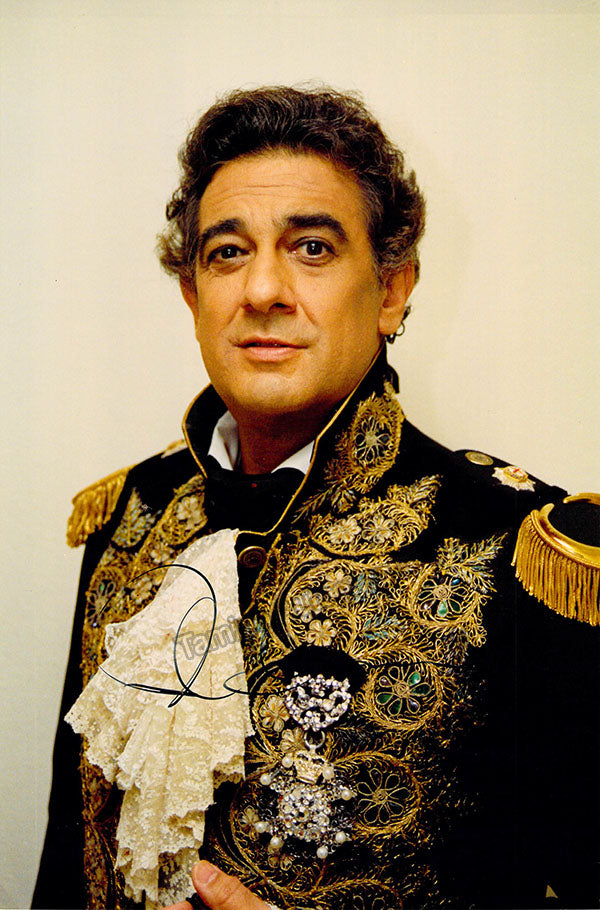 Nice color studio photograph signed and inscribed by him with a short sentiment, shown as Otello in Verdi's opera (probably for the Zeffirelli film production). Size is 7.9 x 9.8 inches, in excellent condition.
