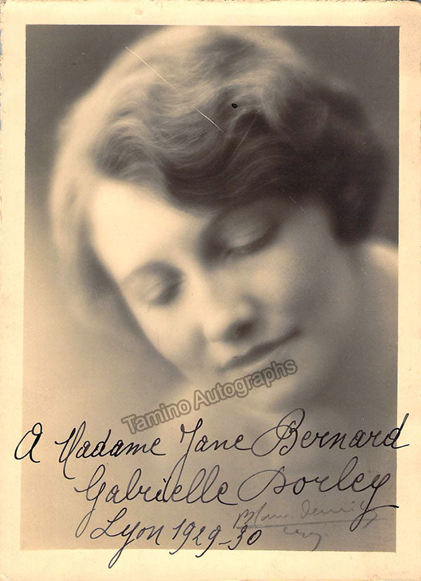 Belgian soprano, signed photograph, shown as herself, inscribed in Lyon, dated in the 1929-1930 opera season. Stamped on verso by photographers Blanc and Demilly, Lyon. Size is 5 x 6.75 inches, some bends, otherwise in excellent condition.