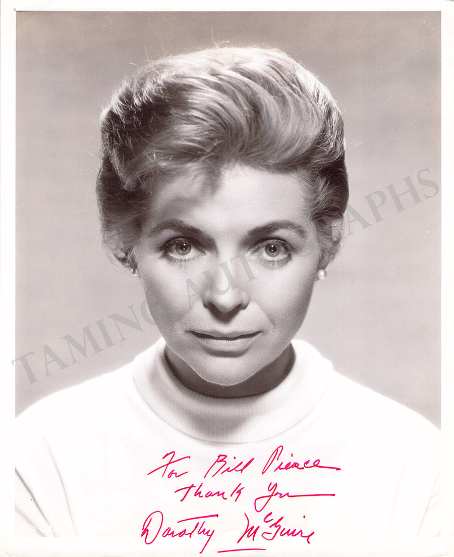 Black-and-white photograph signed and inscribed by her with a short sentiment. Size is 8.1 x 9.9 inches, in excellent condition.