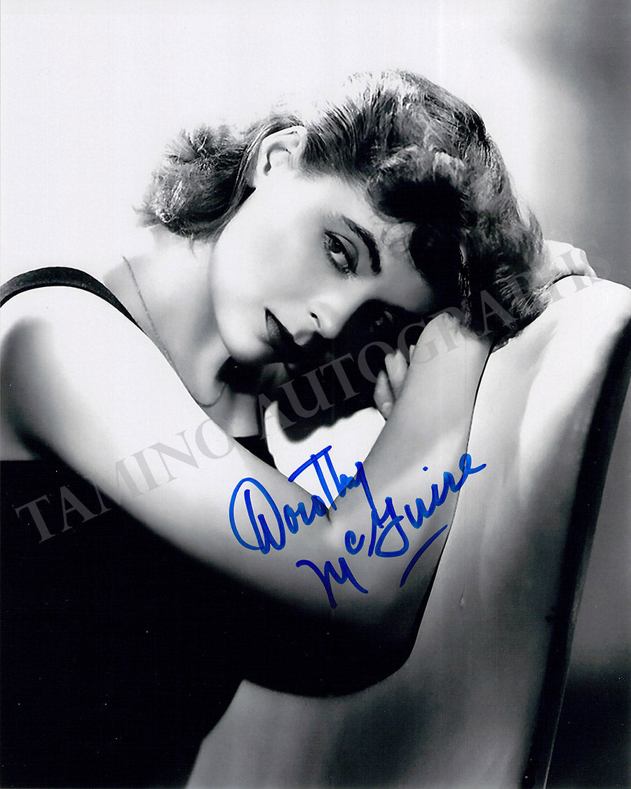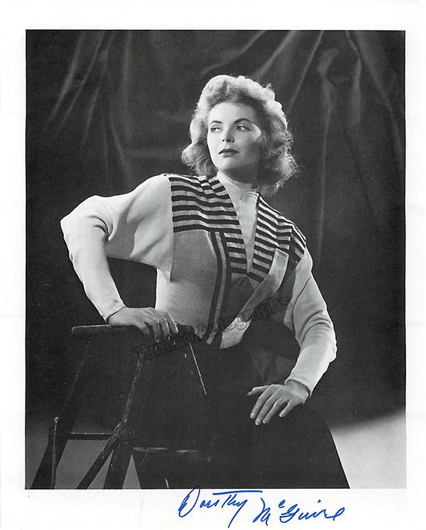 Black-and-white glamour photograph signed by her at an old age, here shown young. Size is 7.8 x 10 inches, in excellent condition.