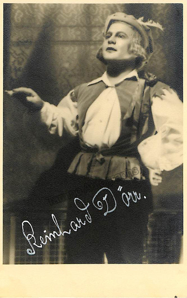 German tenor (1906-1943), signed photo postcard, shown in role. Stamped on verso by photographer W. Saeger, Berlin. Size is 3.25 x 5.25 inches.