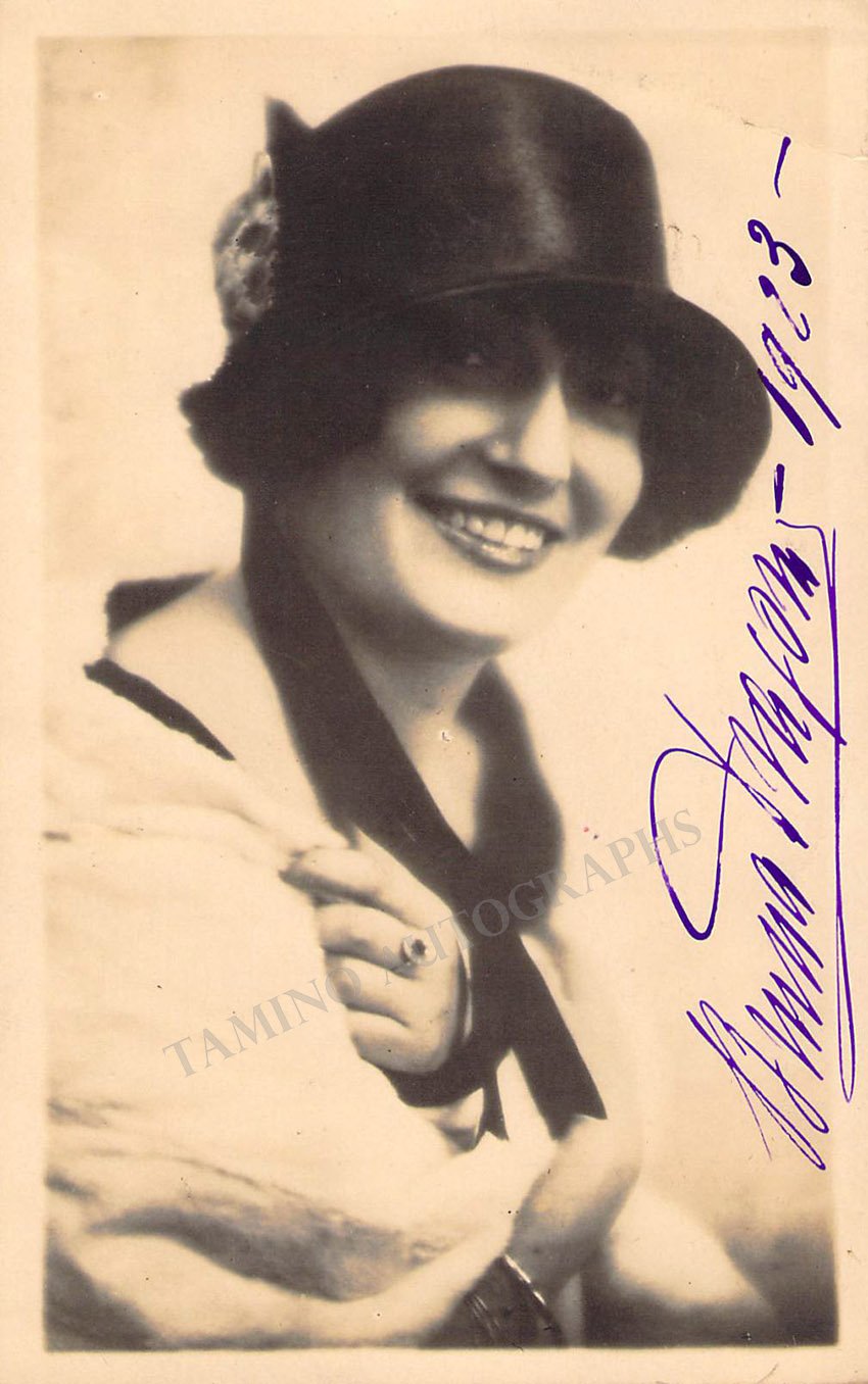 Italian soprano (1897-1962), signed photo postcard, shown as herself, dated in 1923. Size is 3.5 x 5.5 inches, in excellent condition.