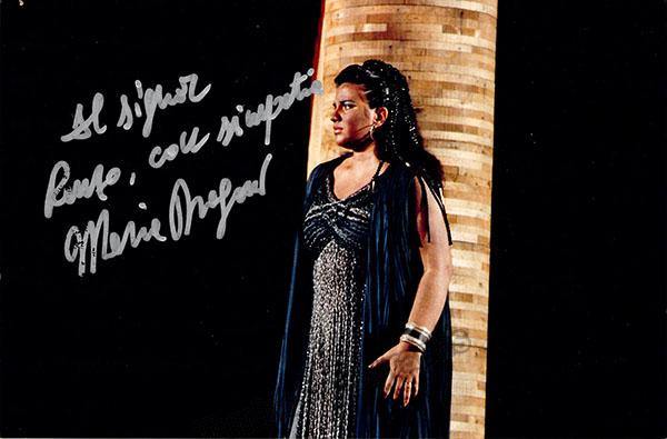 Italian soprano (b. 1958), signed photo, shown in title role of Verdi's Aida, inscribed. Size is 5 x 7.5 inches, in excellent condition.