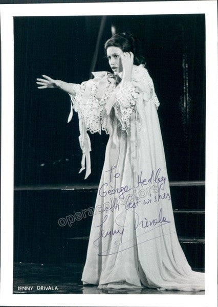 Greek soprano (b.1957).  Signed photo, shown in role, inscribed.  Size is 5 x 7 inches, in excellent condition.