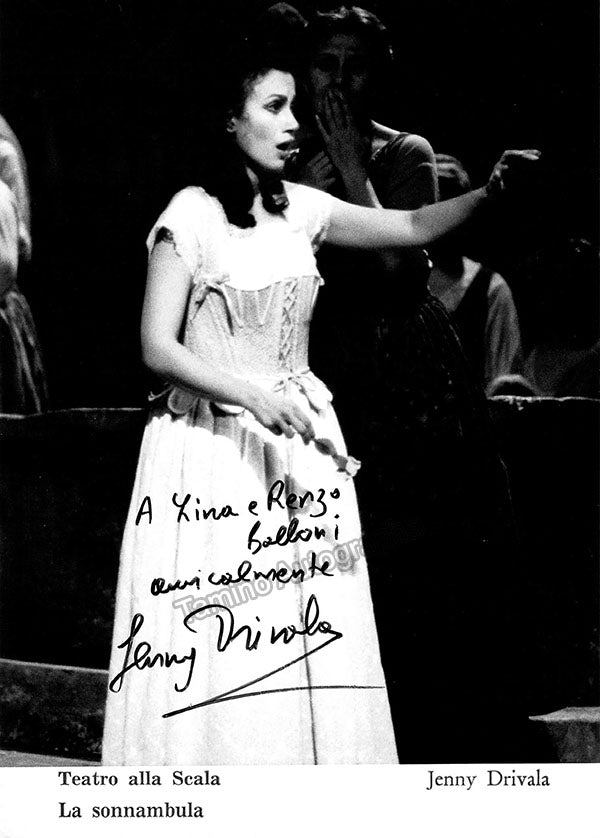 Greek soprano (b.1957).  Signed photograph, shown as Amina in Bellini's La Sonnambula, inscribed.  Photo by Lelli and Masotti photographers, La Scala, Milan. Size is 5 x 7 inches, in excellent condition.