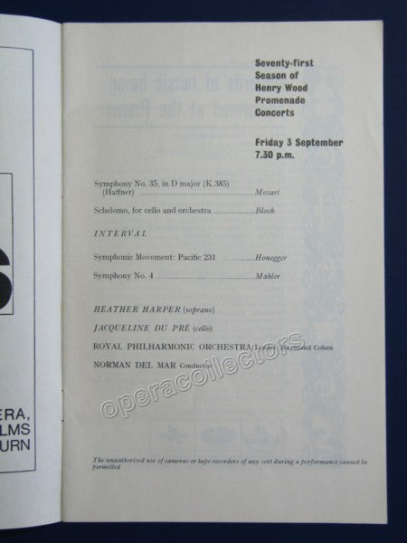 Jacqueline du Pré and Norman del Mal with the Royal Philharmonic Orchestra at the Proms. Royal Albert Hall, 3 September 1965. Mozart, Bloch, Mahler, Honegger