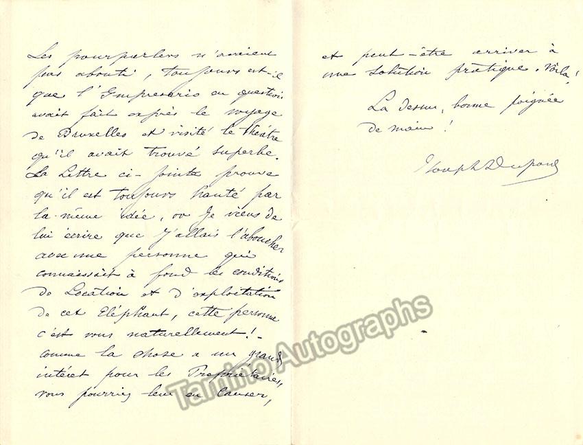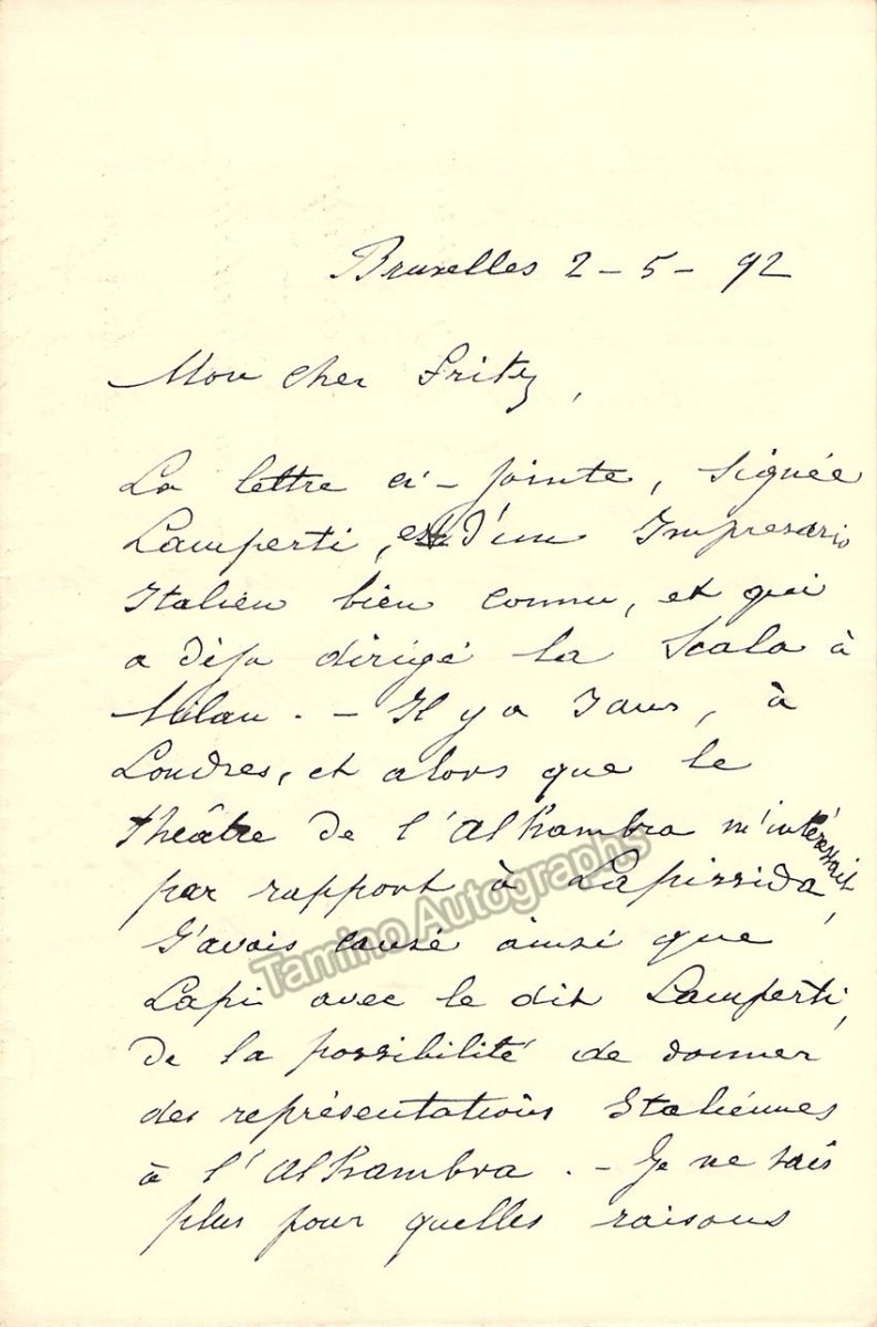 Dupont, Joseph - Autograph Letter Signed 1892 - Tamino Dupont, Joseph - Autograph Letter Signed 1892 - Tamino