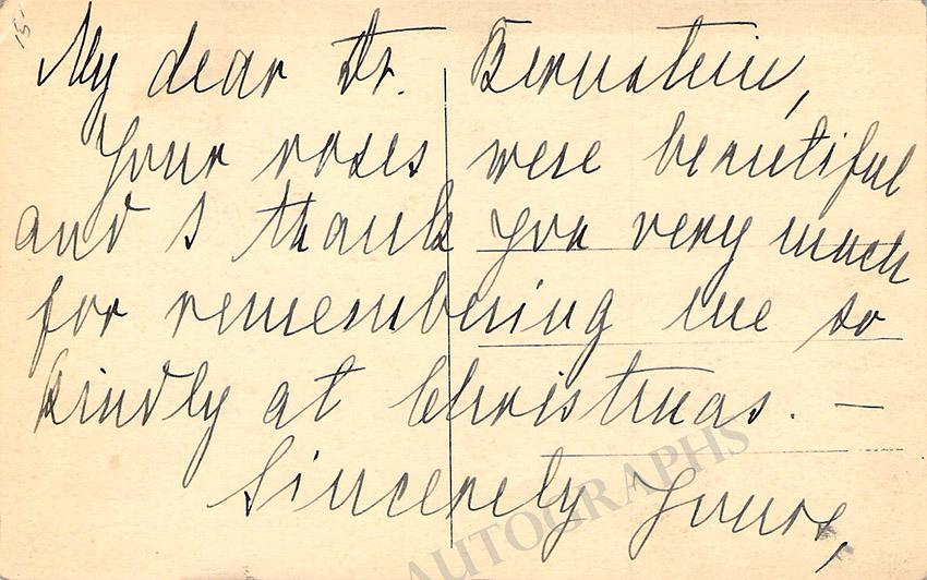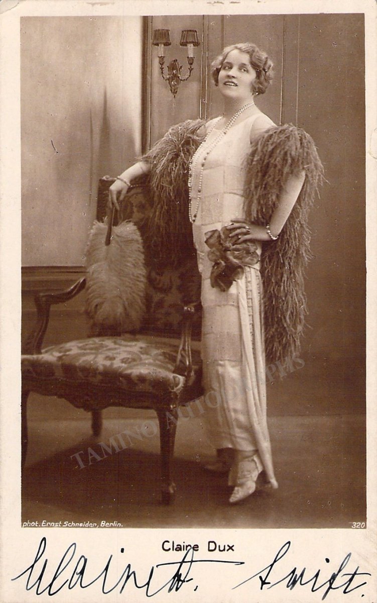 Prussian soprano (1885-1967), signed photo postcard, shown in role. Signed on front as "Claire A. Swift" (her married name at the time), with inscription on verso. Photo by Ernst Schneider, Berlin. Size is 3.3 x 5.3 inches, in very good condition.