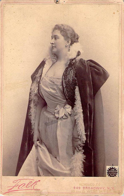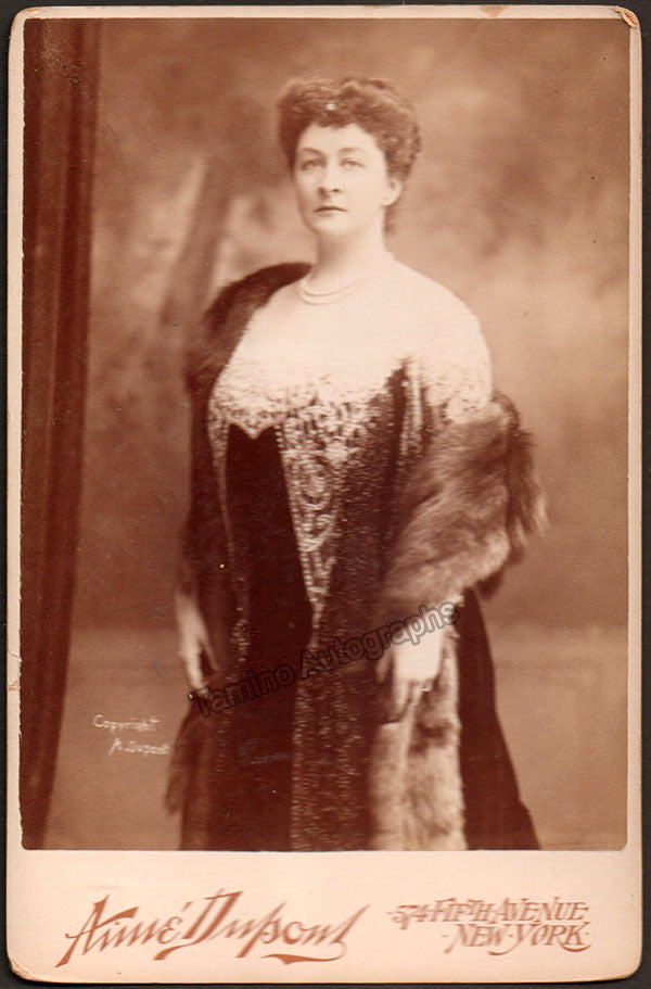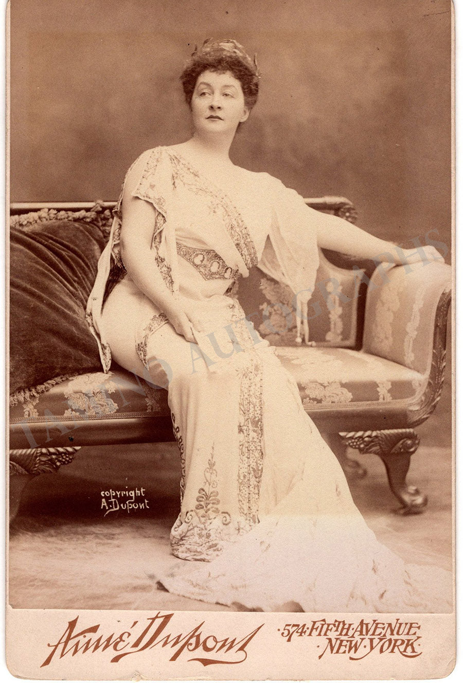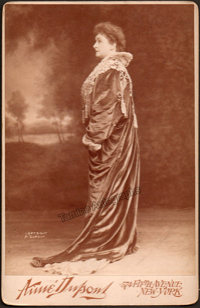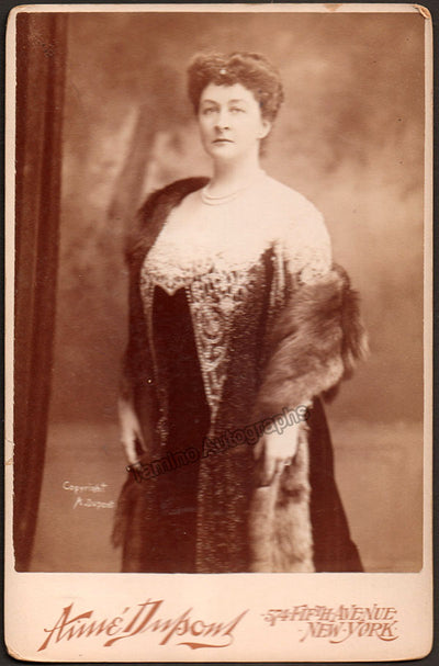 Unsigned cabinet photo, shown as herself, photo by Aime Dupont, New York. Size is 4.25 x 6.5 inches, verso is blank and rubber stamp by Henry Y. Porter, in excellent condition.