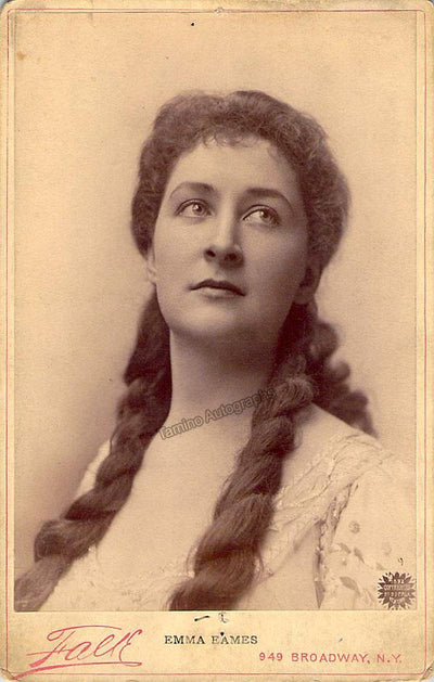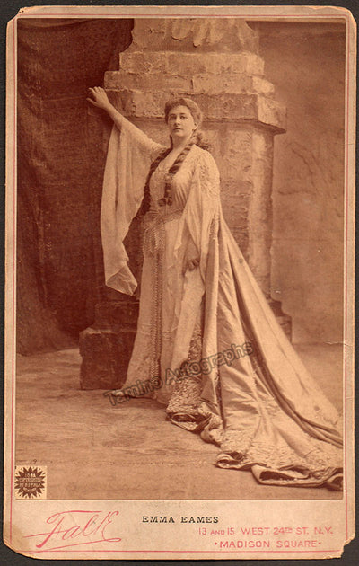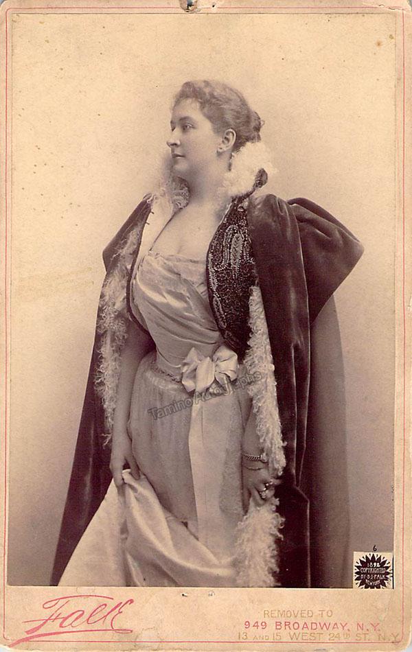 Unsigned cabinet photo, shown as Elsa in Wagner's Lohengrin, photo by Falke, New York. Size is 4.25 x 6.5 inches, small tear at top left and bottom right not affecting the image, otherwise in excellent condition.