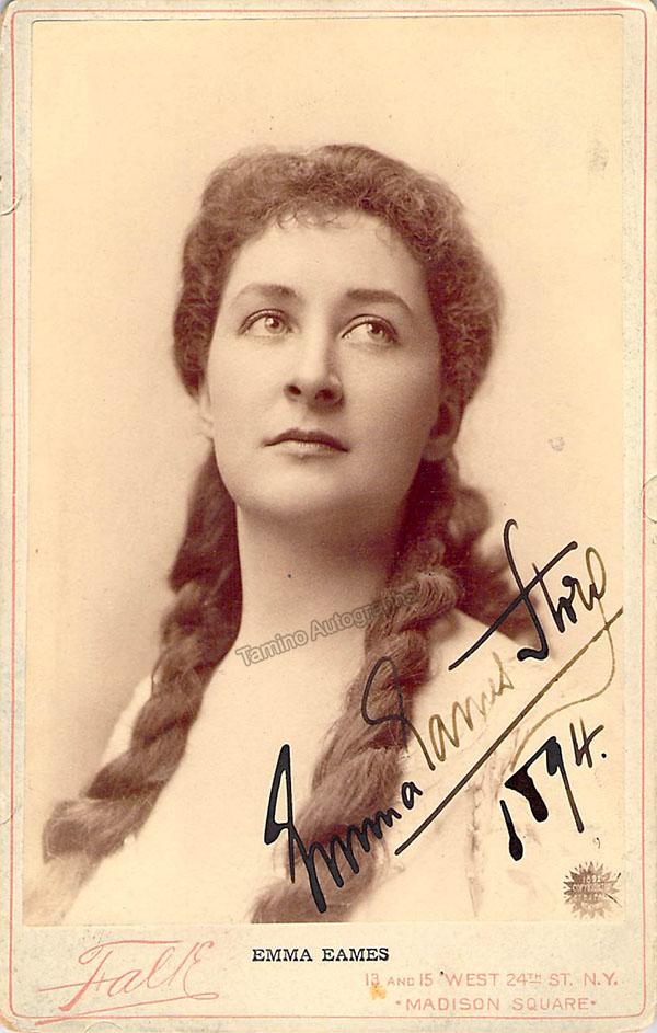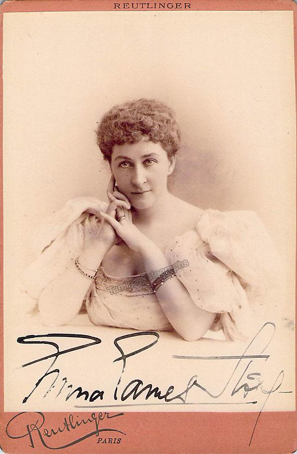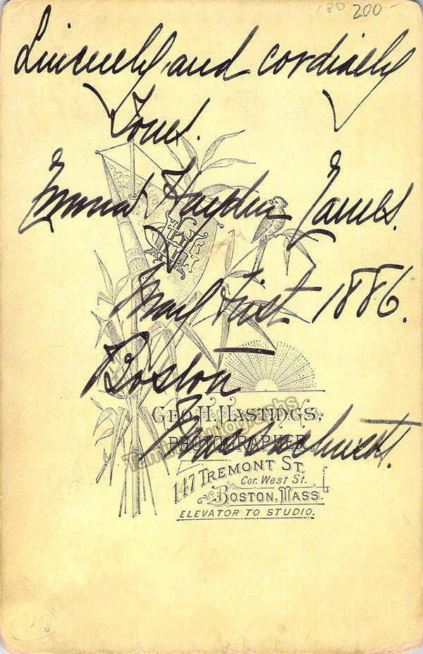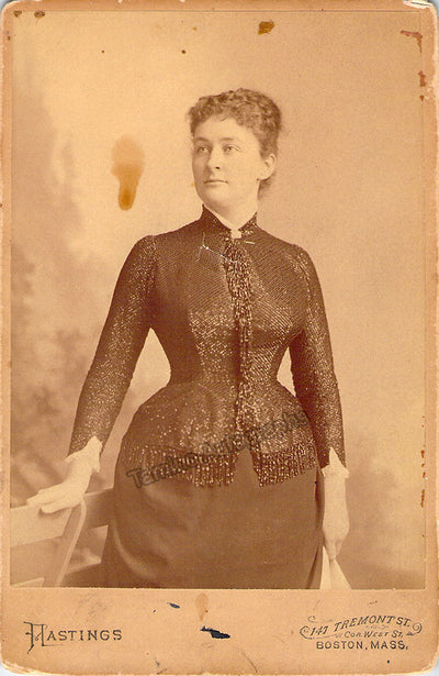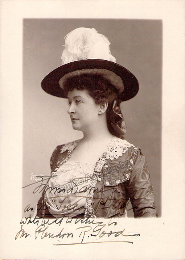 Signed cabinet photograph, shown most likely as herself, singed and inscribed on verso, dated in Boston in 1886. Photo by George Hastings, Boston. Size is 4.25 x 6.5 inches, in very good condition.