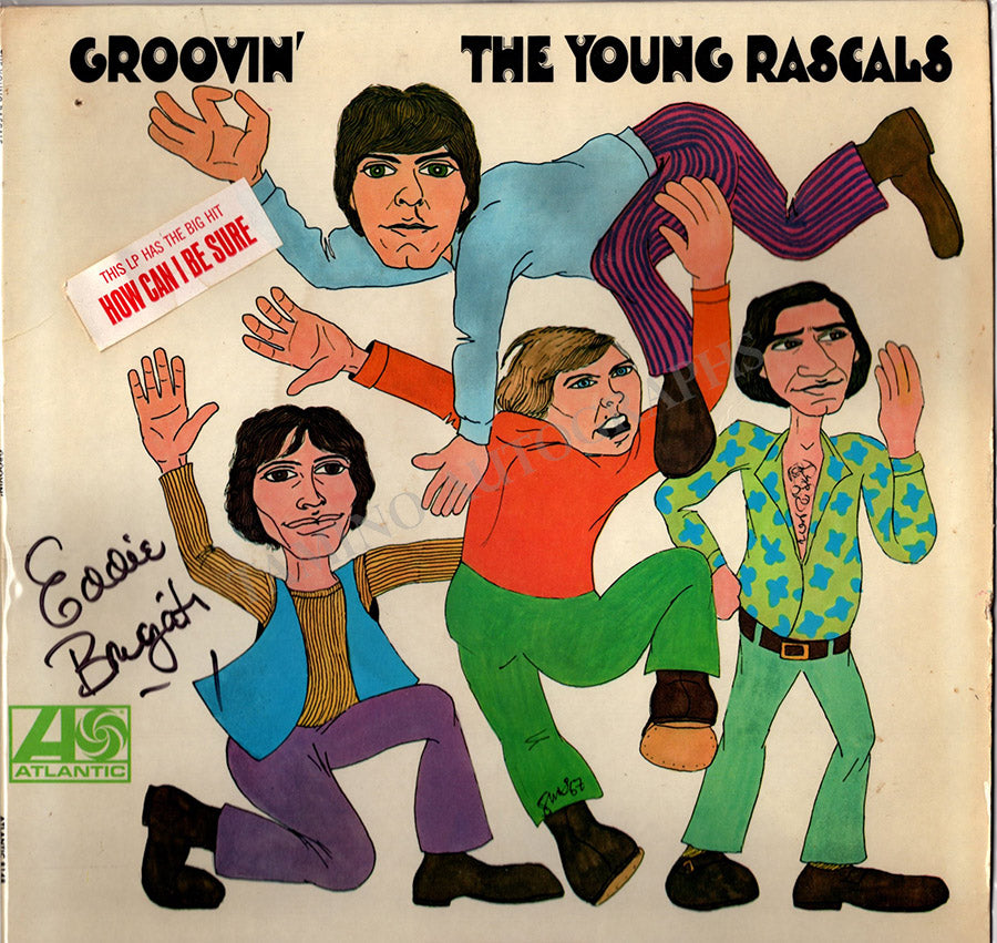 LP record sleeve for "The Young Rascals" album "Groovin'" (1967) signed by him. Size is 12.25 x 12.25 inches, no record included, in very good condition.