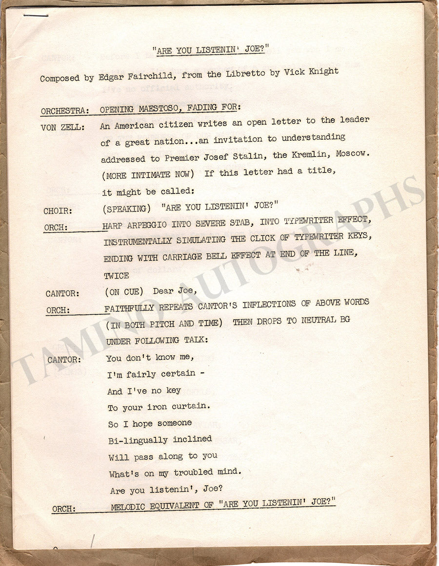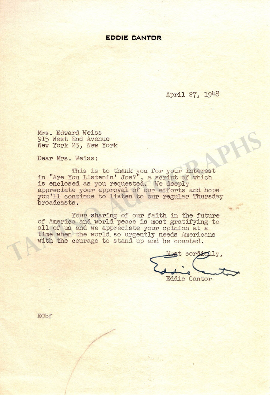 Cantor, Eddie - Typed Letter Signed 1948 & Libretto Cantor, Eddie - Typed Letter Signed 1948 & Libretto Cantor, Eddie - Typed Letter Signed 1948 & Libretto