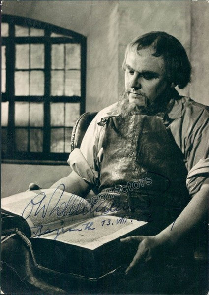 Signed photo postcard of the Austrian bass (1917-2003), shown as Hans Sachs at Bayreuth Festival, 4 x 5.75 inches, in excellent condition