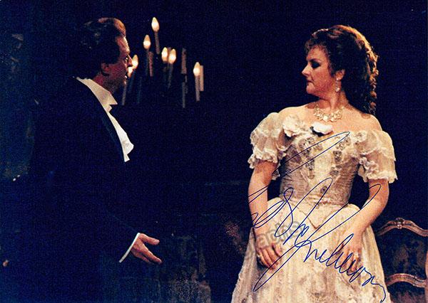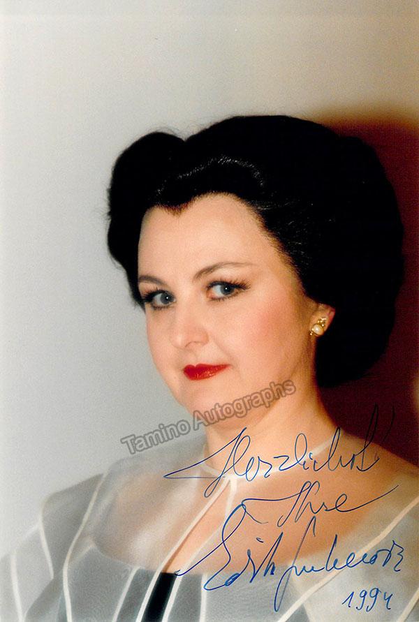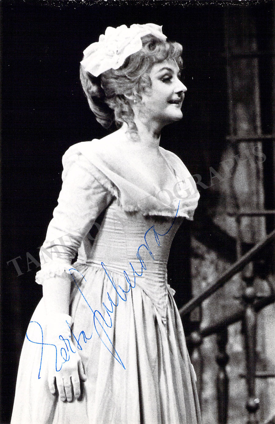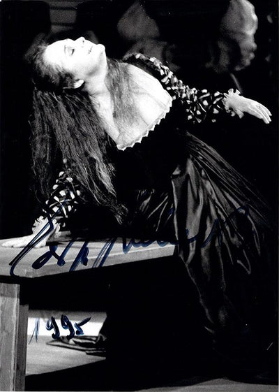 Signed photograph, shown in the title role of Donizetti's Maria Stuarda. Size is 4 x 5.75 inches, in excellent condition.