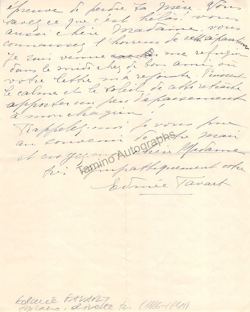 Favart, Edmee - Autograph Letter Signed + Print Favart, Edmee - Autograph Letter Signed + Print Favart, Edmee - Autograph Letter Signed + Print