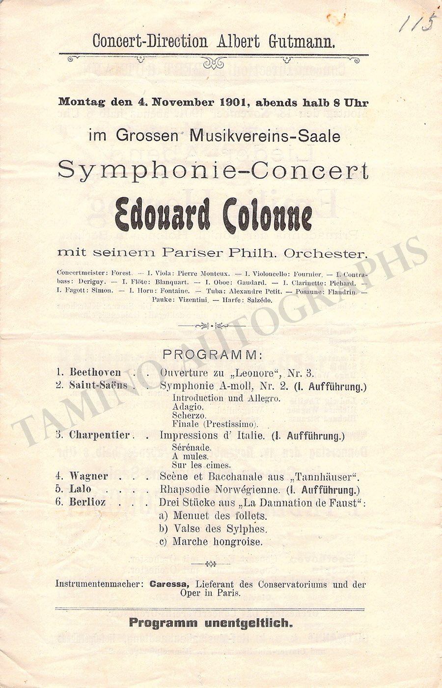 Colonne, Edouard - Concert Program Vienna 1901 Colonne, Edouard - Concert Program Vienna 1901