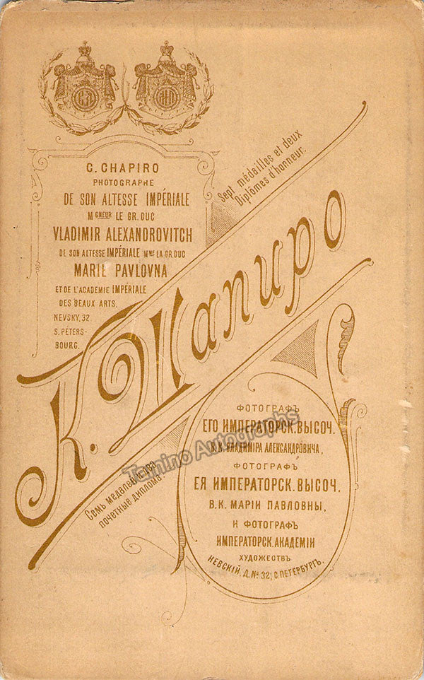 Belgian cellist (1851-1920), one of Joseph Servais pupils. Signed cabinet photo by G. Chapiro, Saint Petersburg, Russia, 4 x 7 inches, in overall very good condition.