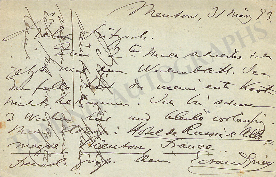 Grieg, Edvard - Autograph Note Signed 1893 Grieg, Edvard - Autograph Note Signed 1893
