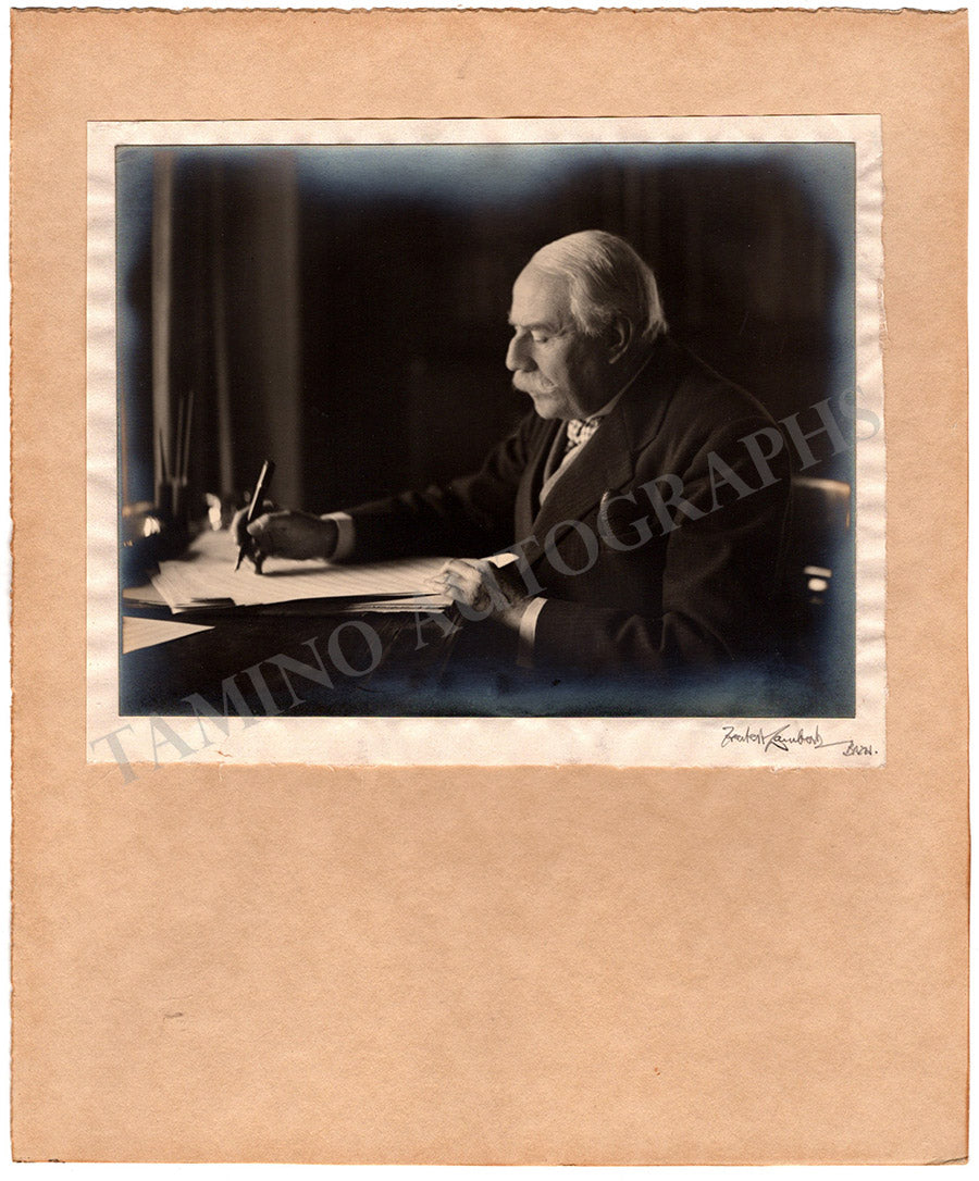 Gorgeous black-and-white photograph of the composer mounted on soft paper where the photographer Herbert Lambert signed.  Total size is 9.8 x 11.8 inches, silvering around edges, otherwise in very good condition.