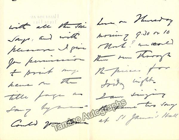 Original autograph letters, music quotes, typed letters, autograph notes, signature cuts, cards, clips, and album pages signed by the English tenor in different sizes, lengths, and conditions (for more details please check individual descriptions).