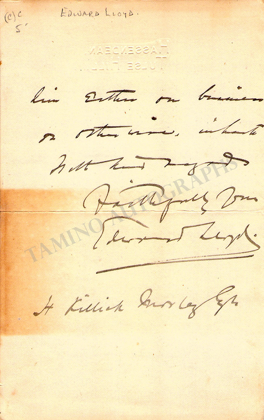 Lloyd, Edward - Autograph Manuscripts (Various Options)