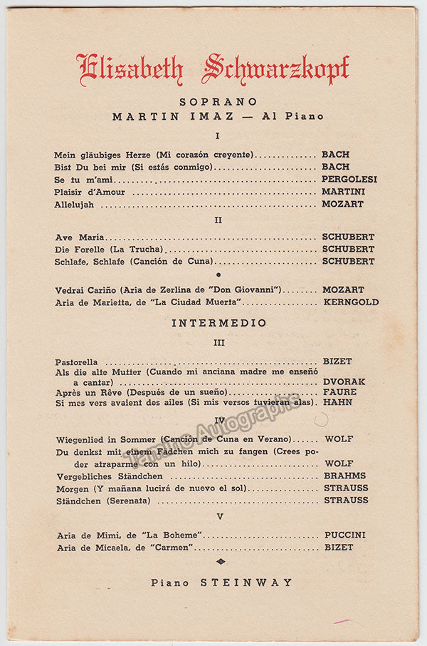 Schwarzkopf, Elisabeth - Signed Program Havana 1952