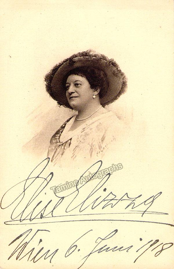 Austrian soprano (1870-1926), signed photo postcard, shown as herself, dated in Vienna in 1918. Size is 3.5 x 5.5 inches, in excellent condition.