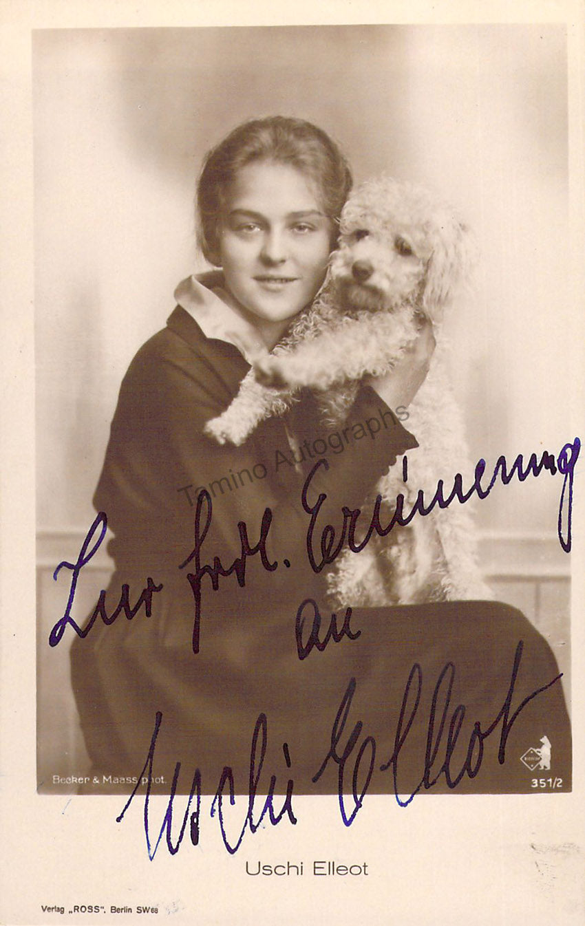 Beautiful photo postcard signed by her with a short sentiment, shown young. Size is 3.3 x 5.3 inches, in excellent condition.